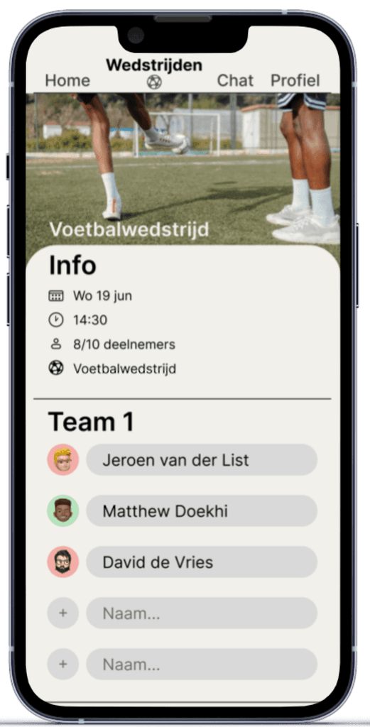 CMD Soccer is een app die mensen binnen de opleiding CMD verbindt, door voetbaltoernooien te organiseren waarvoor iedereen zich in kan schrijven.