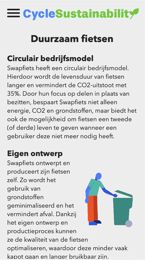 deelfiets een groener alternatief is voor de deelauto/scooter. Ik heb hiervoor veel onderzoek gedaan naar wat Swapfiets doet en hun huisstijl, om zo mijn website zo accuraat mogelijk te maken.