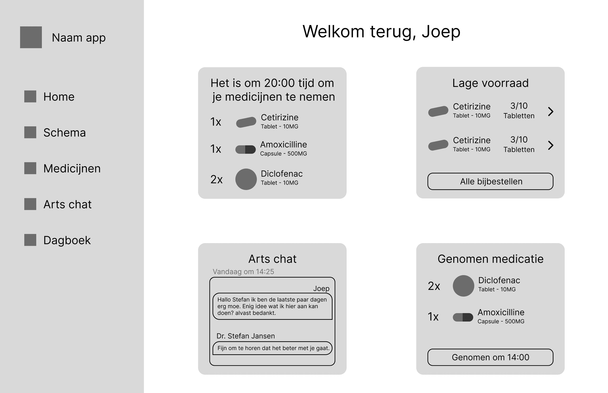 Op de app kun je een eigen medicatie schema toevoegen. Op dit schema kun je instellen welke medicatie je neemt, hoevaak je dit per dag doet en de tijd waarop je deze medicatie inneemt.